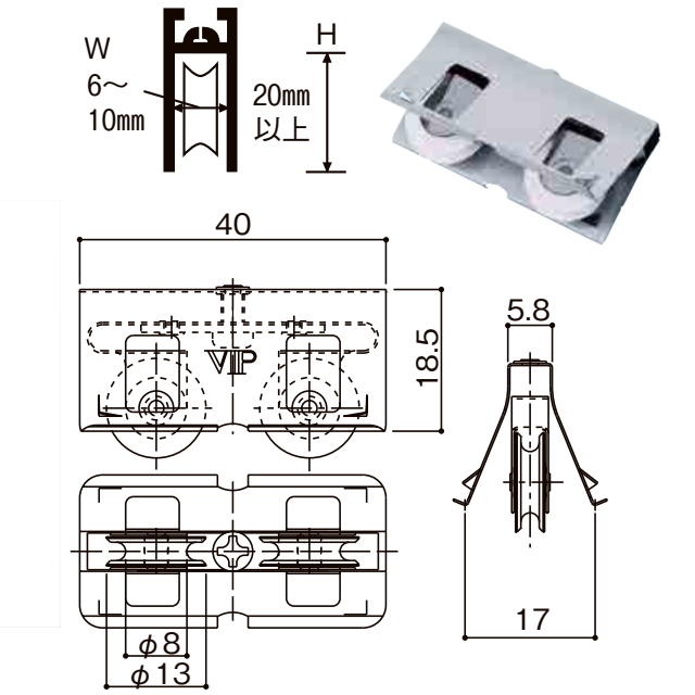 網戸サッシ用 はめ込み戸車 網戸用 6DW丸