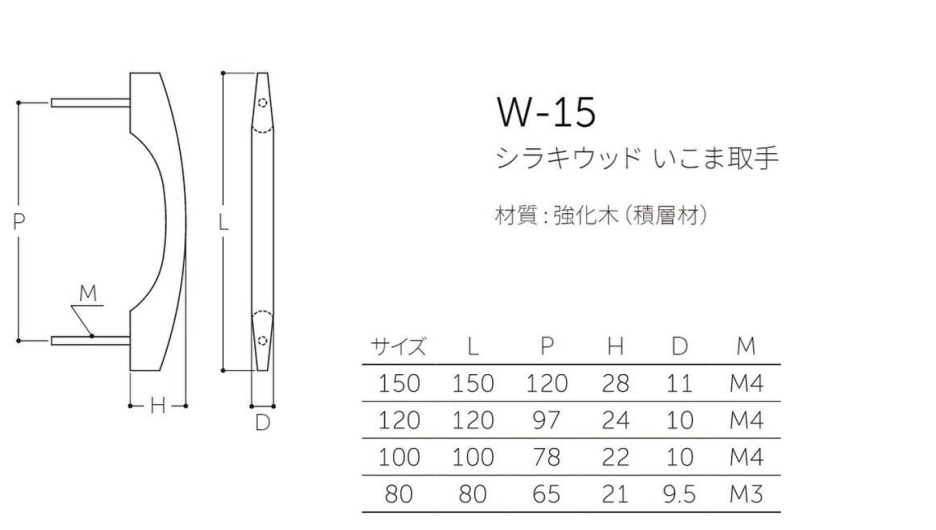 丸喜/MK シラキウッド いこま取手 W-15 糸ネジタイプ 材質:強化木(積層材)