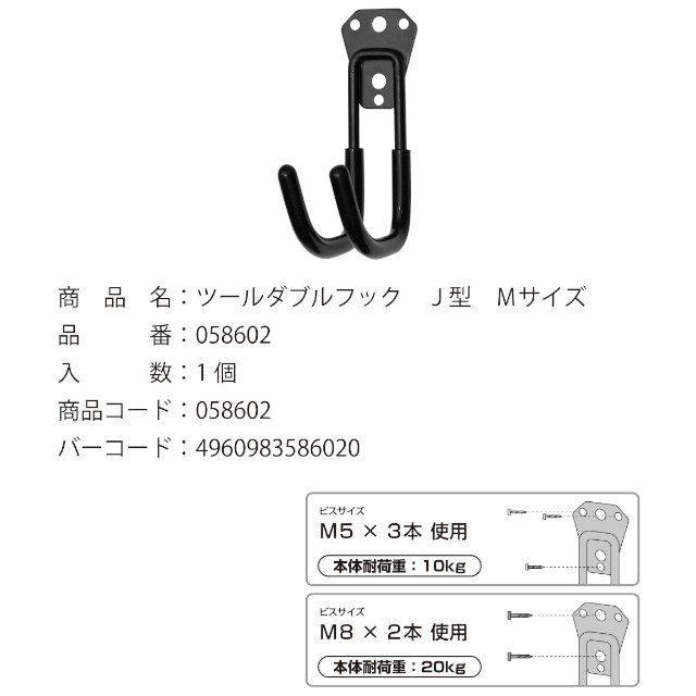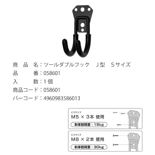TQOOL ツールBIGフック ダブル 本体耐荷重15kg